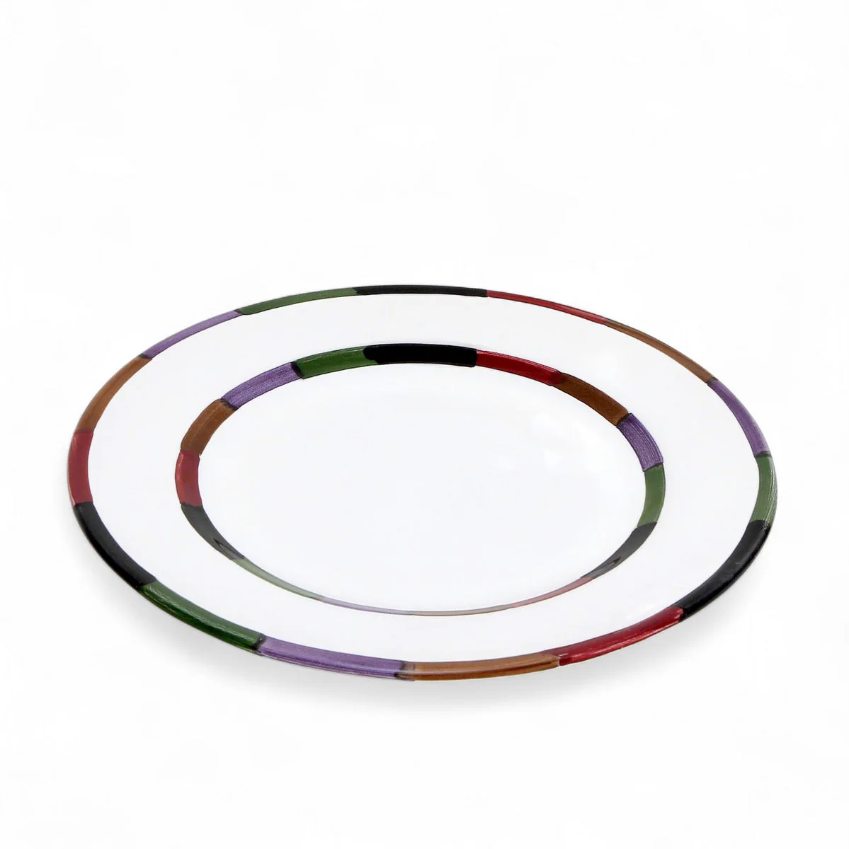 These circles border the rim, adding a playful and dynamic element to any table setting.